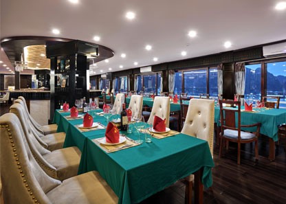 A set-menu dinner with various Asian dishes will be served to all the guests. You can experience the relaxing atmosphere of Halong Bay during the night time while enjoying tasty food cooked by our dedicated chefs.
