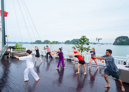 Arcady Boutique Cruise cares about your experience onboard and offboards to make sure your holidays are memorable. Paddling a kayak to explore long-standing caves, visit Viet Hai village to enjoy the Vietnamese local lifestyle, or enjoy the nightlife on the bay with special cocktails from our bar. At any time of the day, you can enjoy sunbathing and sightseeing on our spacious sundeck: feel the energy of the rising sun and wind, free your mind, and let the stress sail away from you.… all these enjoyable experiences will be included in your journey with many surprises waiting for you.