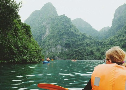 For guests who are into more energetic activities, we have Kayak boats avalable for any itinerary. Your Halong Bay Cruise with us will be even more memorable when you hop on a kayak boat to explore Trong Cave, Surprising Cave, Titop Island,... Along with kayaking, you can swim around the lagoons or join mountain trekking to the top of the islands and see the panoramic view of the landscape.